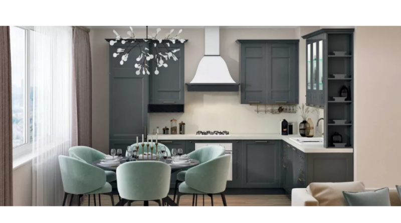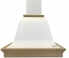 На фото представлена вытяжка в цвете купола белый муар, деревянное обрамление из массива дуба.