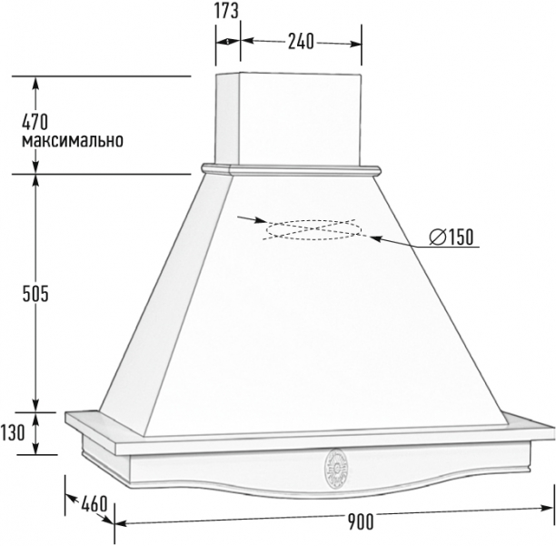 Купол вытяжки выполнен из металла толщиной 7 мм и окрашен порошковой краской.